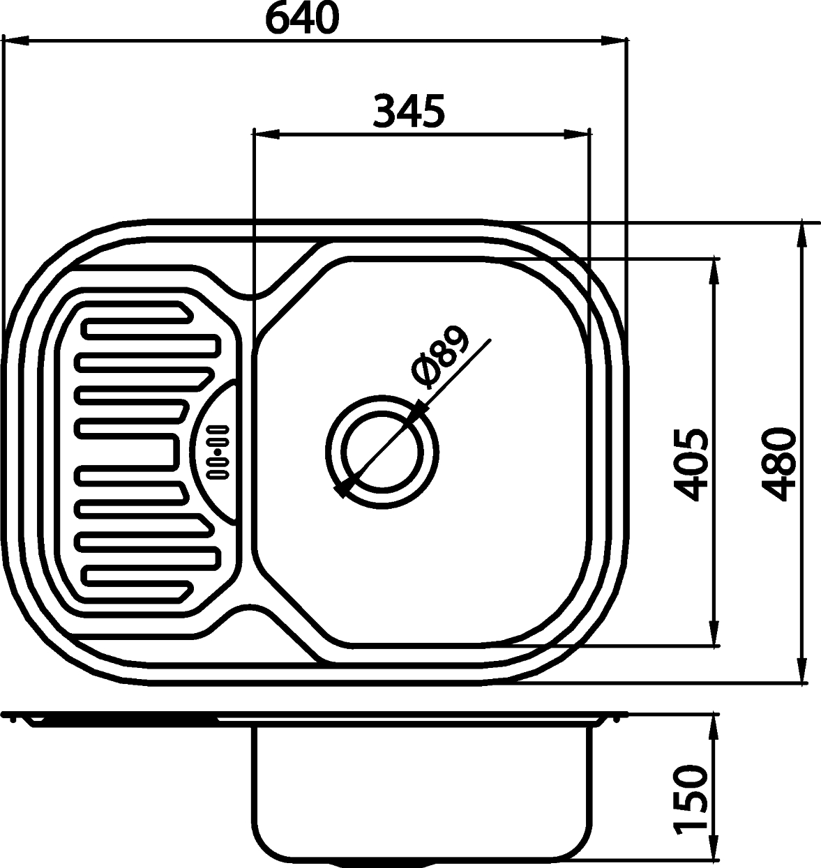 Dřez s odkapem 48x64 přepad