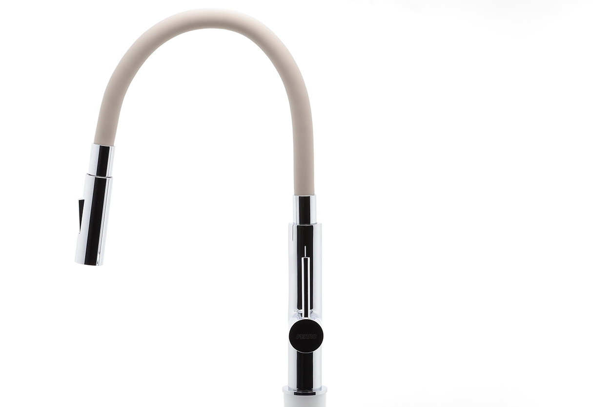 Kvalitní a odolná keramická kartuše 25 mm s prodlouženou zárukou 5 let. Prvotřídní povrchová úprava a chrom. Stojánková dřezová baterie s FLEXI ramenem a 2-polohovou SLIM koncovkou pro normální proud vody nebo spršku. Součástí baterie jsou přívodní hadičky.
