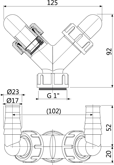 Dvojité kolínko G1"/17-23 se zpětnými klapkami