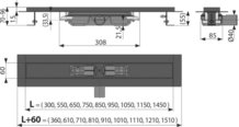 Nerezový podlahový žlab APZ101 LOW , snížený 1050, černý mat