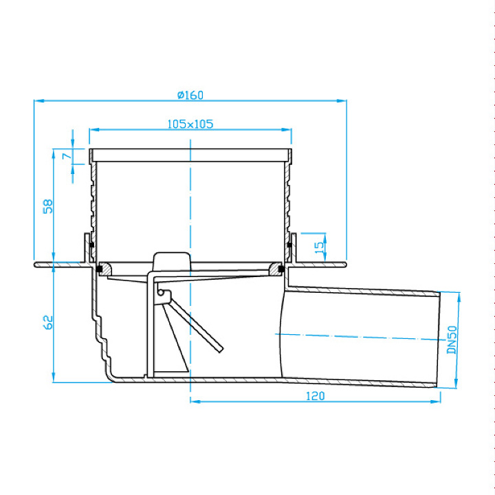 Podlahová vpusť boční 50  nerez.suchá klapka