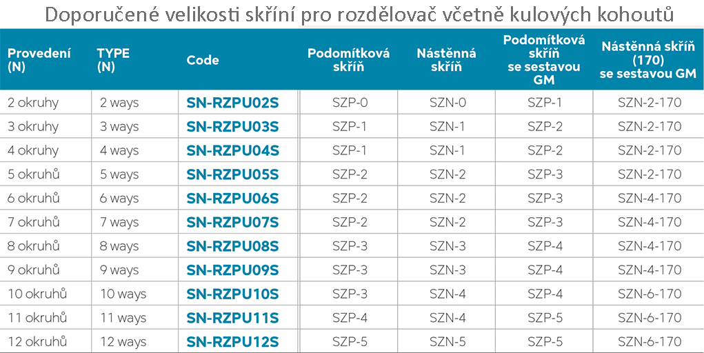 Rozdělovač s uzavíracími ventily a regulačním šroubením s průtokoměry pro podlahové vytápění, připojení G1", výstup pro svěrné šroubení G3/4" s eurokonusem.Rozdělovač je možné doplnit čerpadlovou sestavou GM40GPA a kulovými kohouty KFPS3.Doplňky rozdělovače najdete v sekci Příslušenství k rozdělovačům.Tabulku vhodných skříní najdete v obrázku produktueProvas.cz - položit dotaz