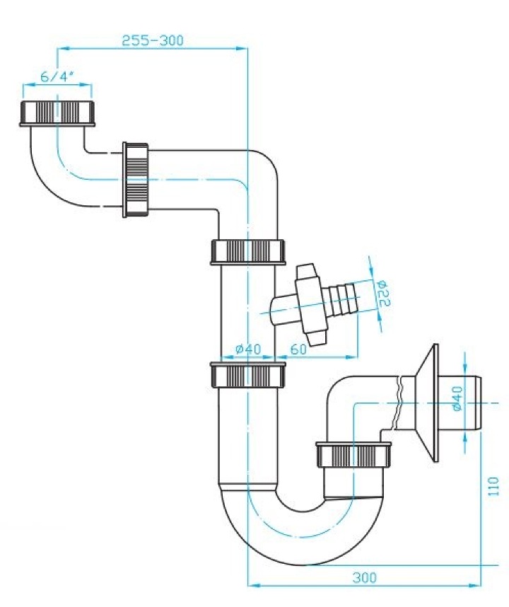 Sifon U úsporný 40, 6/4" matka prač.výv.