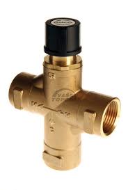 Termostatický směšovač pro teplou voduPlynulé nastavení 35 °C – 65 °C, provozní tlak 10 barů.