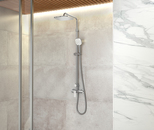 Set obsahuje nástěnnou sprchovou baterii s horním vývodem a roztečí 150 mm s kvalitní a odolnou keramickou kartuší KEROX 35 mm s prodlouženou zárukou 7 let. Prvotřídní chromové provedení. Součástí balení je kovová sprchová hadice 150 cm, hlavová sprcha 230 x 230 mm, 3-polohová ruční sprcha a posuvný jezdec s držákem ruční sprchy. Set je výškově nastavitelný 1035 - 1225 mm. Umožňuje nastavit i odchýlení vrchního úchytu od stěny v rozmezí 50 - 80 mm. Hlavová sprcha obsahuje šetřící regulátor průtoku vody na max 12 l/min a je vybavena EASY CLEAN tryskami pro snadné čištění.eProvas.cz - položit dotaz
