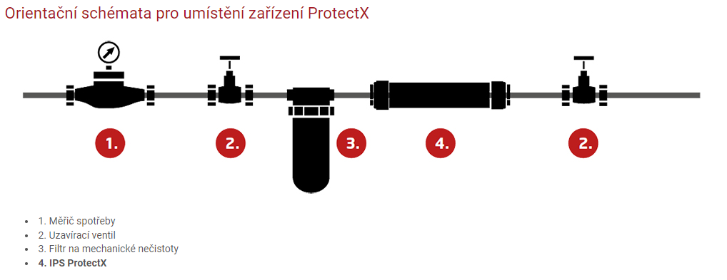 IPS ProtectX je tvořeno průtokovým tělesem se vstupním a výstupním otvorem. Jsou v něm umístěny elektrody ve tvaru turbín (ne magnety) ze dvou různých elektricky vodivých materiálů. Konstrukční řešení elektrod je patentově chráněné (TGP® – turbulentní galvanická polarizace) a vytváří vířivé proudění vody, tím způsobuje změnu struktury minerálů.