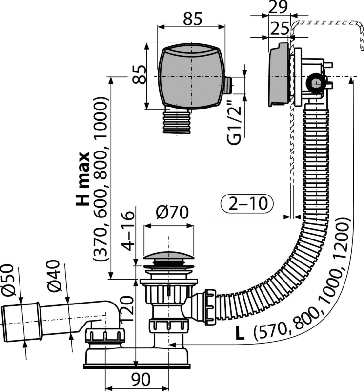 - Délka vanového sifonu 80 cm