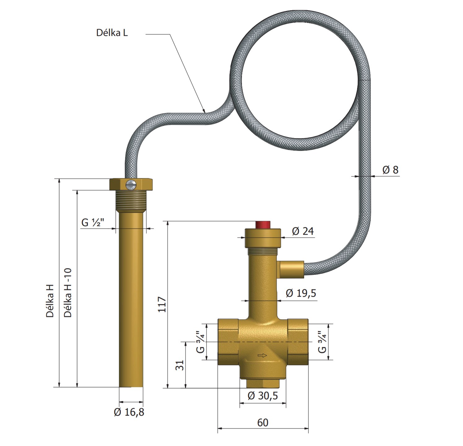 Ventil dochlazovací BVTS 97°C- 1,3m